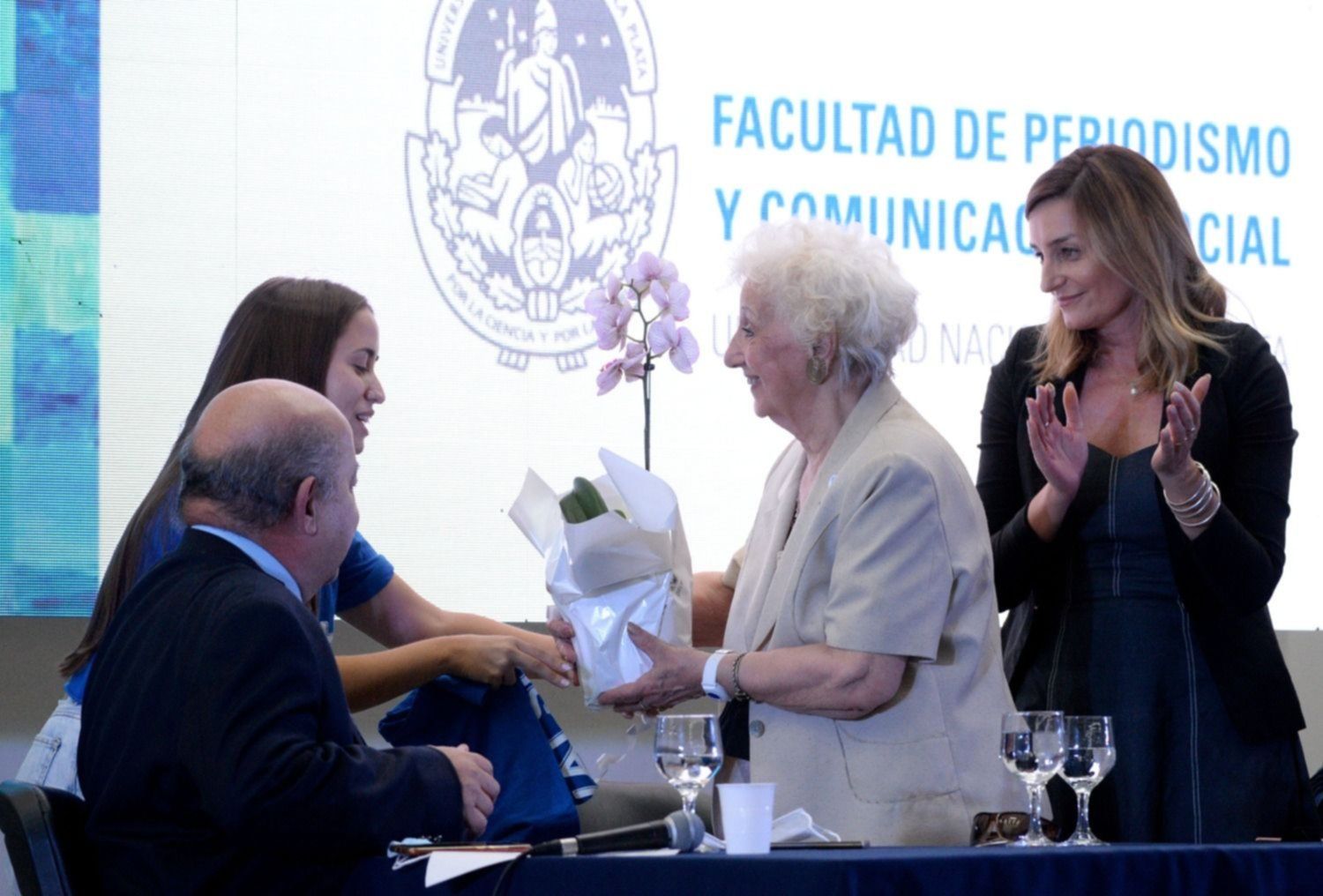 En un emotivo acto, la facultad de Periodismo y Comunicación Social de la UNLP le otorgó el Premio Rodolfo Walsh a la presidente de la Asociación Abuelas de Plaza de Mayo Estela de Carlotto, por "su compromiso inclaudicable y auténtico, en defender y promover los derechos humanos y ser consecuente con la verdad y los valores democráticos".