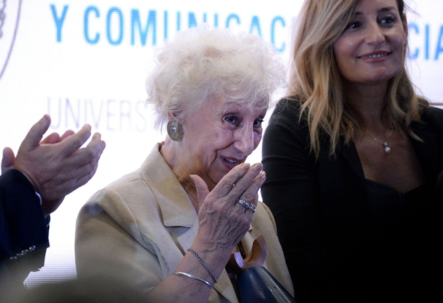 Luego fue el turno de Estela, quien hizo un breve repaso por sus 45 años de lucha por los nietos desaparecidos durante la última dictadura cívico- militar y la búsqueda de Memoria, Verdad y Justicia. En esa línea, consideró que el premio no era para ella sino para todas las integrantes de Abuelas de Plaza de Mayo. “Yo soy una mujer normal”, afirmó, al tiempo que aseguró que “esta es mi facultad (en referencia a Periodismo)”.