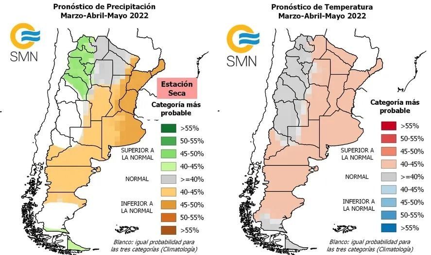 En cuanto a las precipitaciones, en el SMN indican que serán menores a los años anteriores. Para 2022, al menos en este trimestre analizado, lloverá menos que antes.