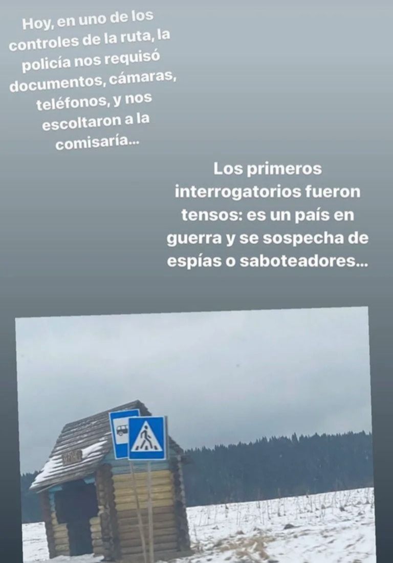 "Hoy, en uno de los controles de la ruta, la policía nos requisó documentos, cámaras, teléfonos, y nos escoltaron a la comisaría. Los primeros interrogatorios fueron tensos: Es un país en guerra y se sospecha de espías o saboteadores", contó el corresponsal en su cuenta personal de Instagram.