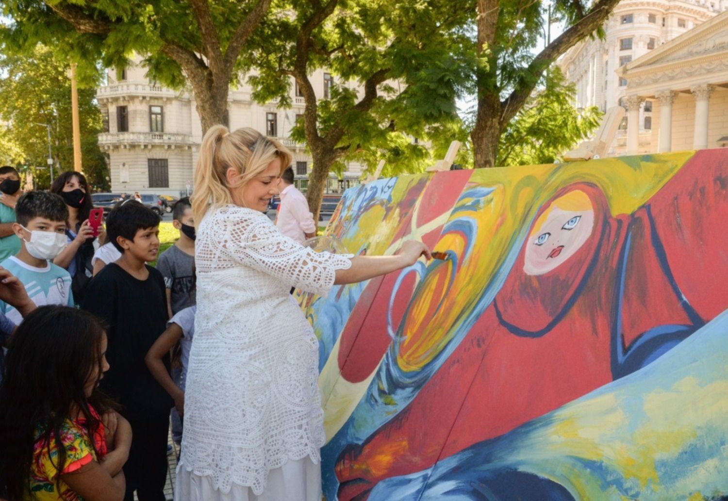 A su vez, durante el encuentro, la Primera Dama dejó sus pinceladas en el mural colectivo que se está elaborando desde que se instaló la carpa y luego se unió a los presentes en una oración interreligiosa por la paz. “De esta tarde y del encuentro me llevo un gran recuerdo”, expresó, al tiempo que puso en valor el haber “sido participe y dejar mi huella en este mural por la paz”.