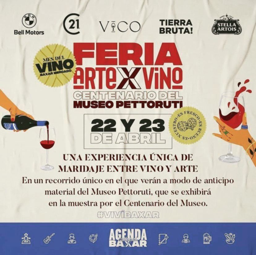 BaXar Mercado realizará la feria Arte & Vino en el marco de los 100 años del Museo Provincial de Bellas Artes Emilio Pettoruti. El evento se realizará en el histórico museo el 22 y 23 de abril, de 18 a 23, y reunirá a las vinotecas más importantes de la ciudad.