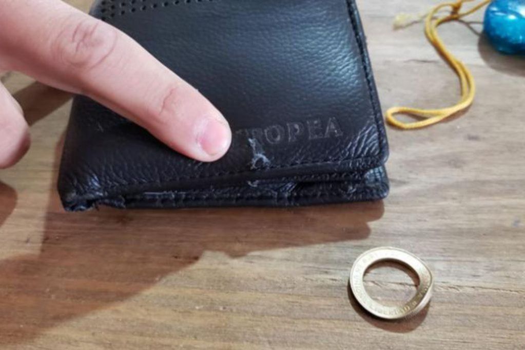 Un joven estuvo al borde de haber sufrido un trágica muerte y se salvó de milagro gracias a, nada más y nada menos, que una moneda. La víctima recibió un disparo a quemarropa en medio de un feroz robo, pero la bala dio justo donde él tenía la billetera y el metal ayudó a frenarla, haciendo que ésta quedara a solo centímetros de su arteria femoral.