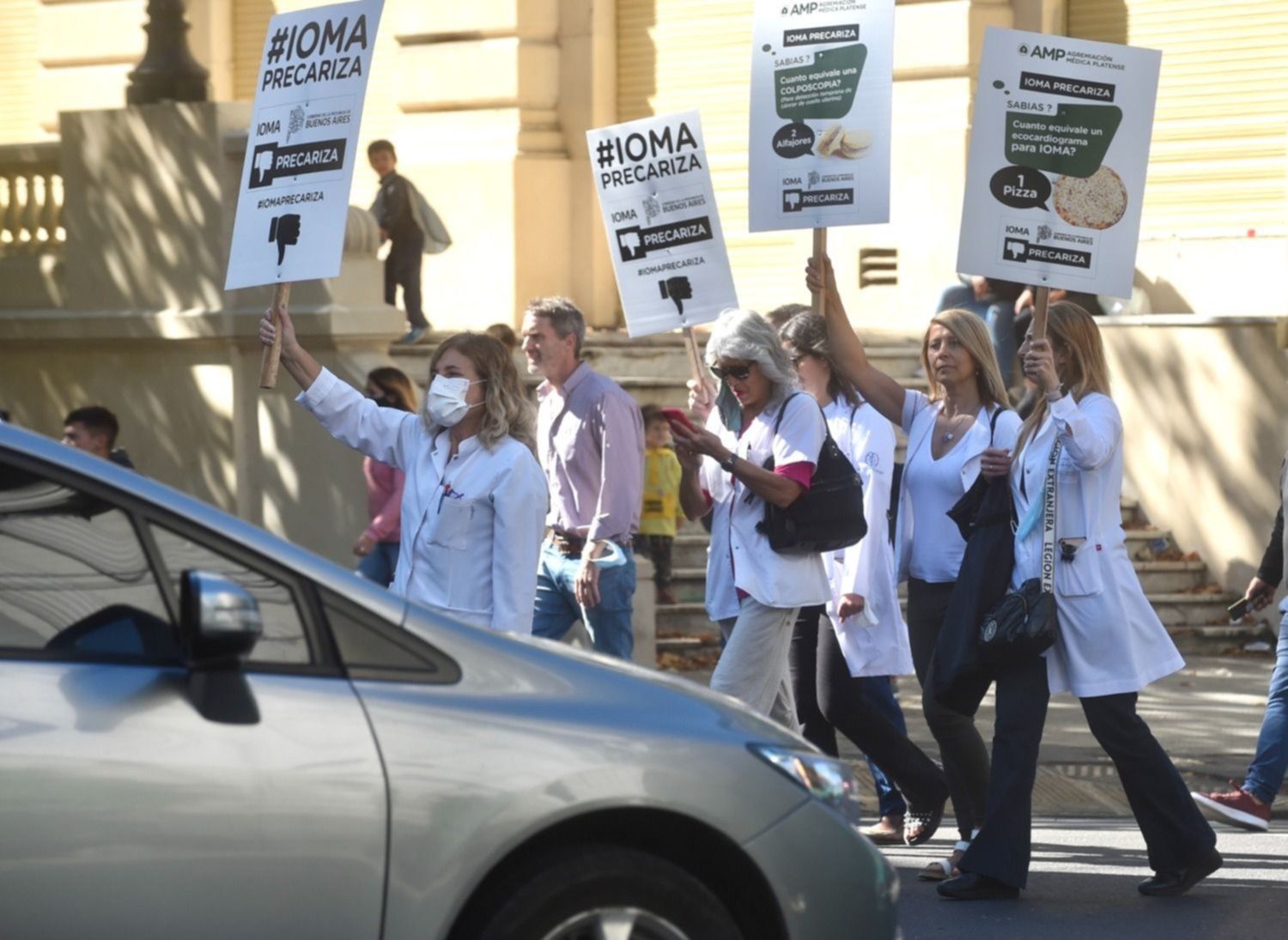 Durante la marcha también expresaron su preocupación por la "pérdida solapada y paulatina" de la libre elección del médico/a y del lugar de atención que el IOMA promueve con la creación de sus policonsultorios: “Con el argumento de ofrecer una cobertura al 100% en los policonsultorios no dicen que en la ciudad hay más de 2.000 médicos/as agremiados/as que atienden sin copago, es decir, sin costo para el afiliado”, explicaron desde la Agremiación.