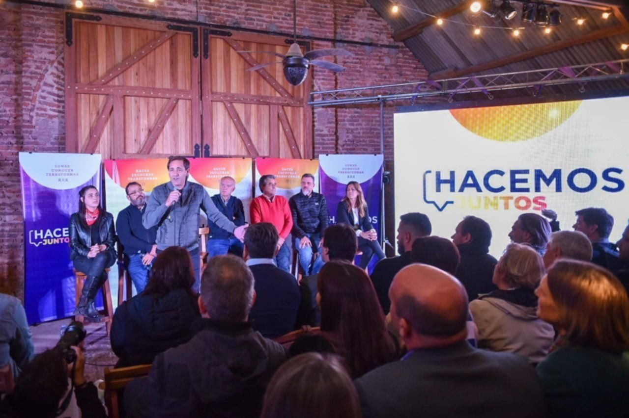 Participaron del lanzamiento el intendente de Lobos, Jorge Etcheverry; el vicepresidente de la Cámara de Diputados bonaerense, Adrián Urreli; la diputada provincial de Juntos, Julieta Quintero Chasman, y los referentes de Hacemos, Nelson Marino, Luis Barbier y Marcelo Villa; junto a diputados, concejales, consejeros escolares y referentes territoriales del espacio.