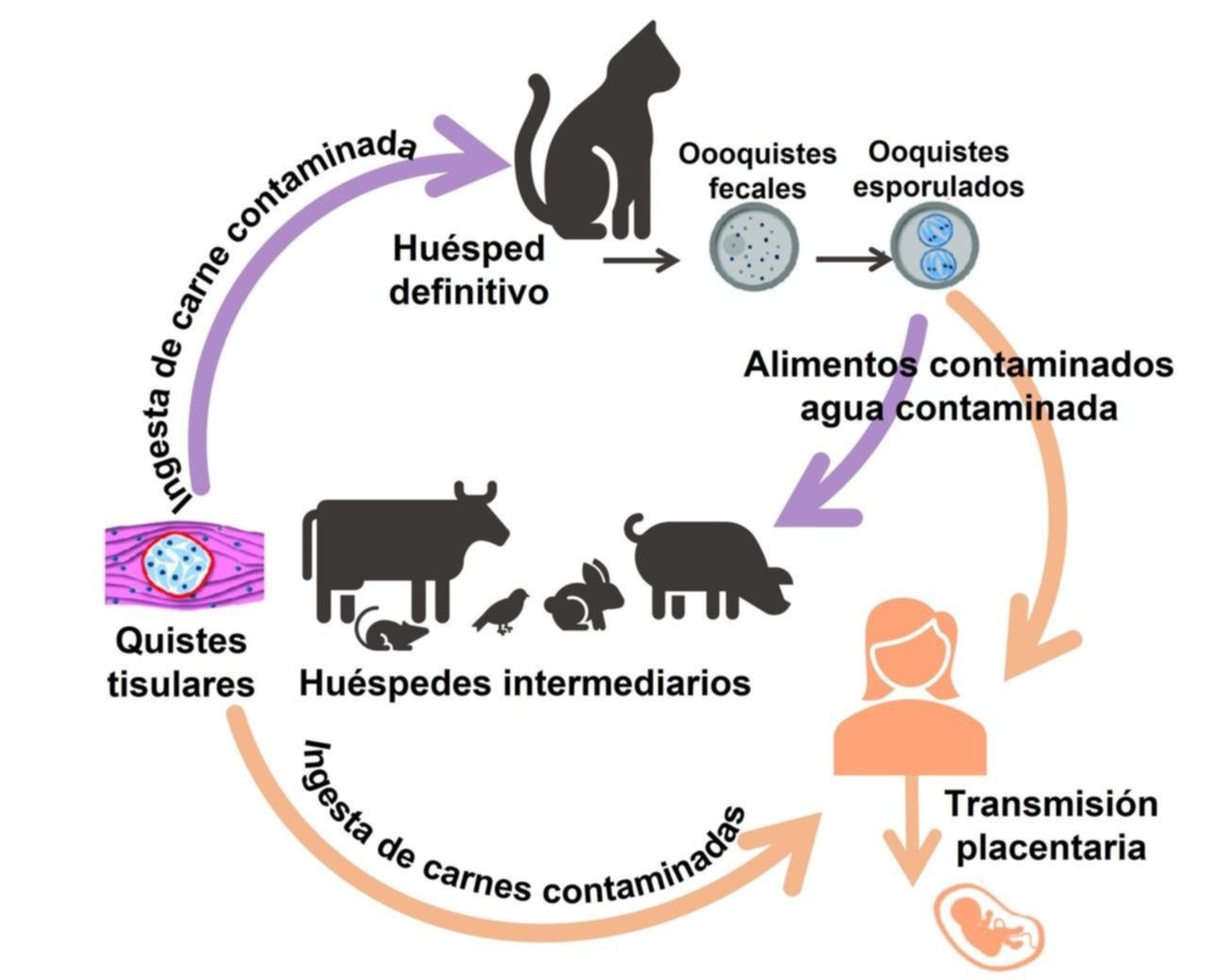 La contaminación humana ocurre por contacto con heces de gatos infectados o por consumo de legumbres y frutas crudas contaminadas, o carne poco cocida de animales infectados. Salvo la infección maternofetal y a partir de órganos transplantados, no hay ninguna otra fuente de transmisión humana. Las cifras oficiales estiman que un tercio de la población mundial está infectada, mientas que cerca de 0,5% a 1% de mujeres embarazadas en el mundo se contaminan con el Toxoplasma Gondii. Registros locales revelan que en provincia de Buenos Aires el 45% de las mujeres tuvo toxoplasmosis, mientras que en Santa Fe hay lugares donde supera el 50%.