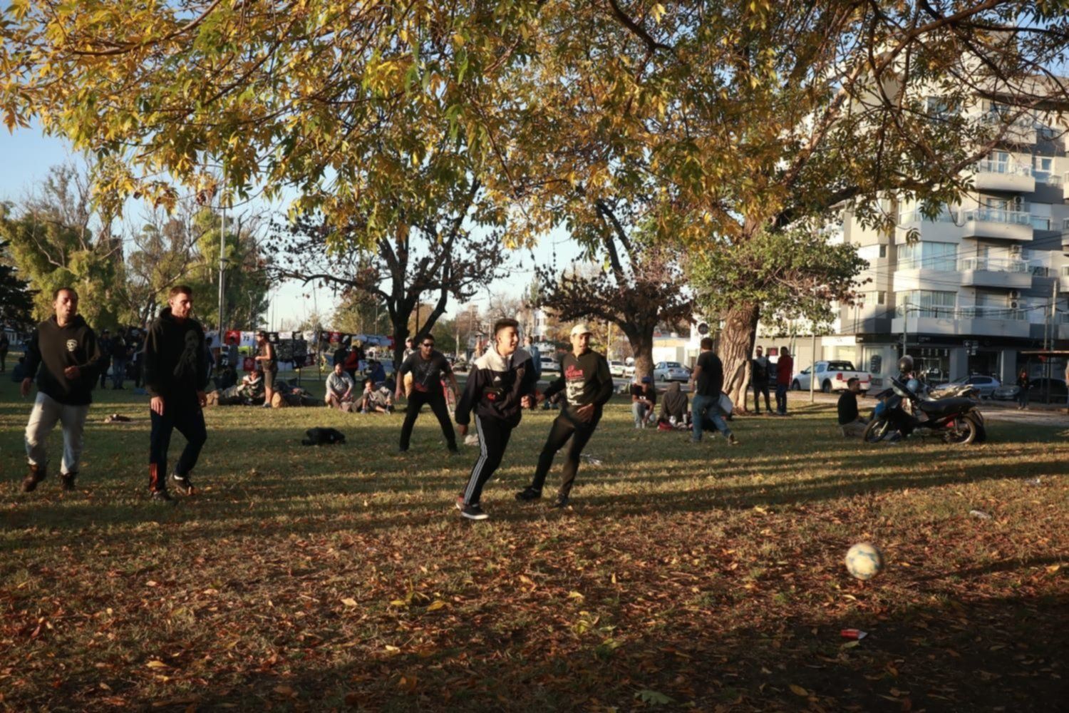 Cuando caía el sol, un puñado seguidores del grupo de Mataderos se las ingenió para improvisar unos arcos de fútbol y jugar un picado.