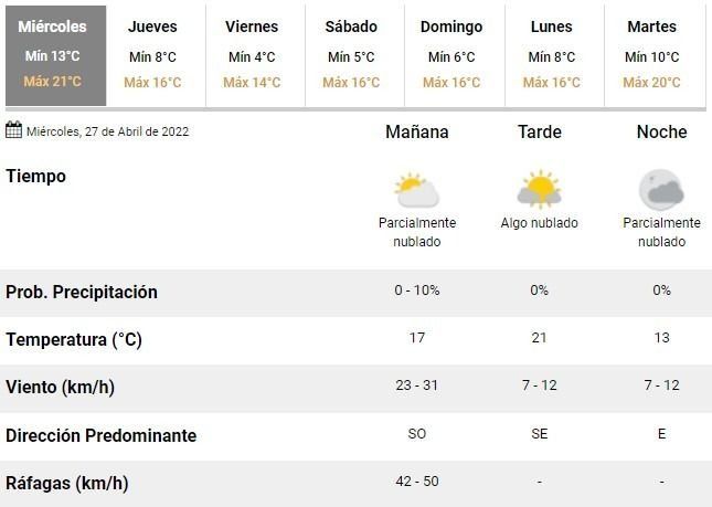Las previsiones para los próximos días, en tanto, indican que serían jornadas de mucho frío por las mañanas la mañana y tardes bastante frescas. Las mínimas promediarán los 5°C a partir del próximo viernes y las máximas apenas alcanzarían los 16°C al menos hasta el lunes próximo.