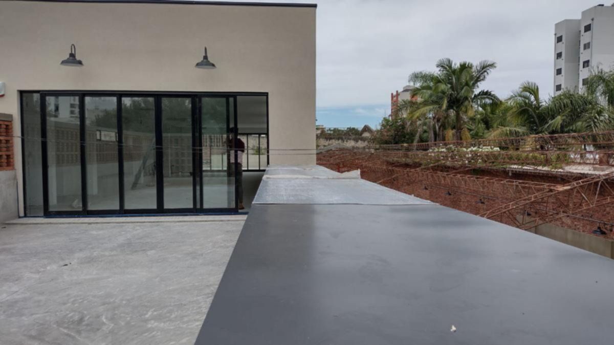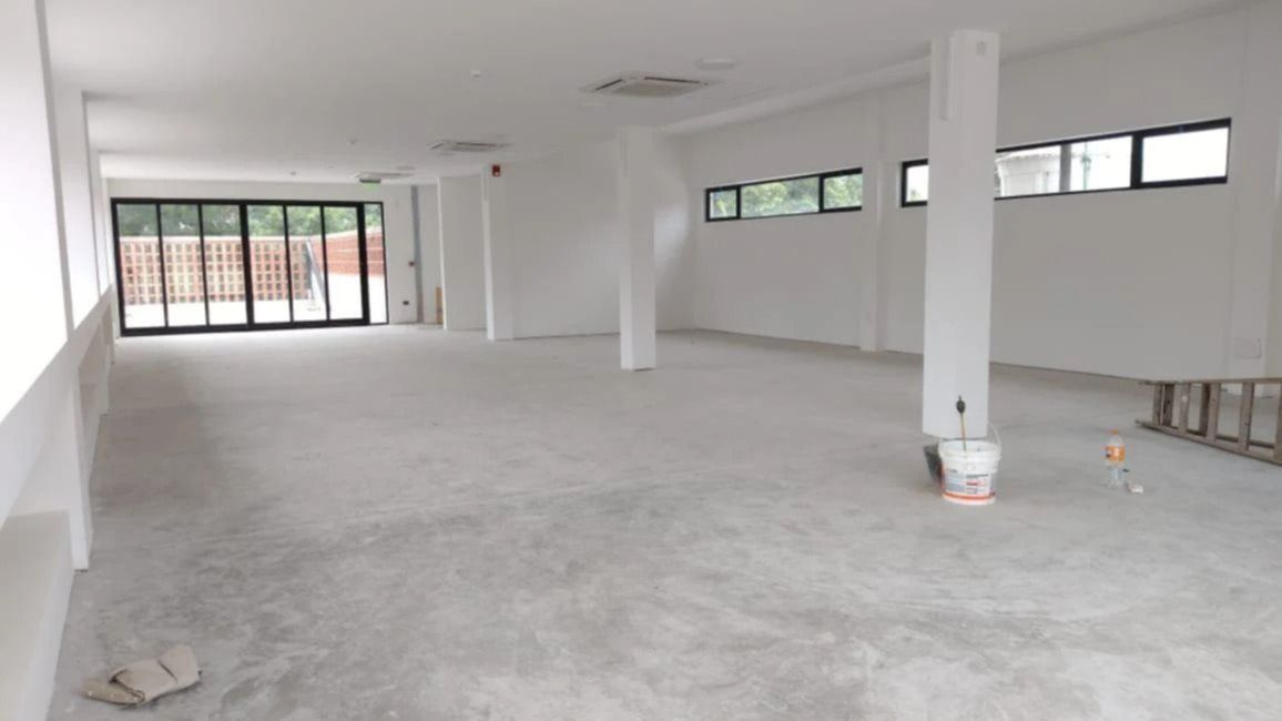 En la planta baja hay un amplio espacio libre, dos baños con vestuarios para hombres y mujeres y un espacio de guardado y equipos de computación, mientras que la planta alta dispone de un segundo espacio libre y dos terrazas de 50 y 100 metros cuadrados.