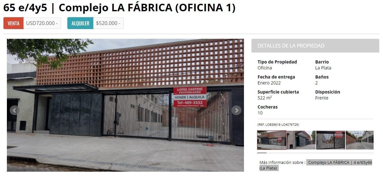 Cada vez falta menos para que los vecinos de La Plata conozcan La Fábrica, el nuevo paseo urbano que funcionará como centro administrativo en 4 y 65 y en internet ya se pueden apreciar en alquiler varios de los amplios locales que incluirá la propuesta. El flamante espacio es construido por LOGA Desarrollos Inmobiliarios y Barrios Urbanos y es comercializado por López Gastesi Propiedades.