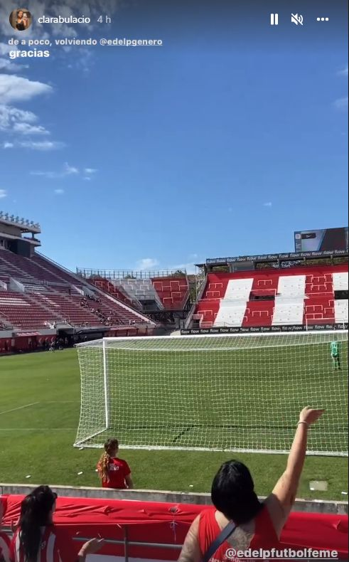 "Hoy un día tan importante para las pibas jugando en el estadio, fui con papá como era de costumbre a la cancha. Es todo un proceso largo, pero es un paso enorme para mí y quería compartirlo y agradecerlo", expresó Clara y cerró con un mensaje bien pincharrata: "Volví, volví a UNO, volví a escuchar el famoso 'Estudió' y volví a vestir la camiseta que tanto me acompañó toda mi vida".