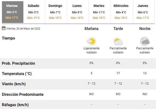 La jornada, según los expertos, transcurrirá sin contratiempos tanto en La Plata como en el resto de la región, con bastante sol y temperaturas de entre 5 y 17°C. En el SMN anticipan un viernes ligeramente nublado y con vientos leves de 7 a 12 km/h soplando desde el noroeste.