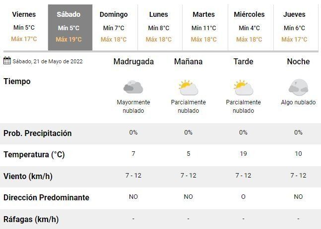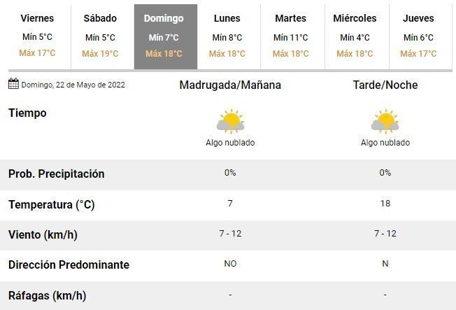 De igual modo transcurriría el domingo: con un cielo solo algo nublado, sol y una temperatura oscilando entre 7 y 18°C.