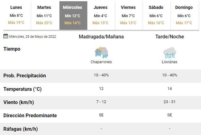 Pasadas las lluvias, en tanto, regresaría el frío y es que en el SMN anticipan un jueves y un viernes de bajas temperaturas, con mínimas rondando los 4 y 7°C y máximas de apenas 15 y 13°C, respectivamente.
