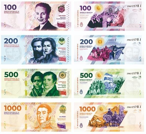 De acuerdo al comunicado oficial del BCRA, la nueva familia de billetes se compone de “cuatro denominaciones que incluyen la representación de tres mujeres y tres varones que jugaron un papel decisivo en la construcción de nuestro país”. El general José de San Martín volverá al billete de máxima denominación, con su rostro impreso en el billete de 1000 pesos; Manuel Belgrano y Remedios del Valle, al de $500; Juana Azurduy y Martín Miguel de Güemes estarán en el billete de $200 y Eva Perón seguirá en el de 100 pesos.