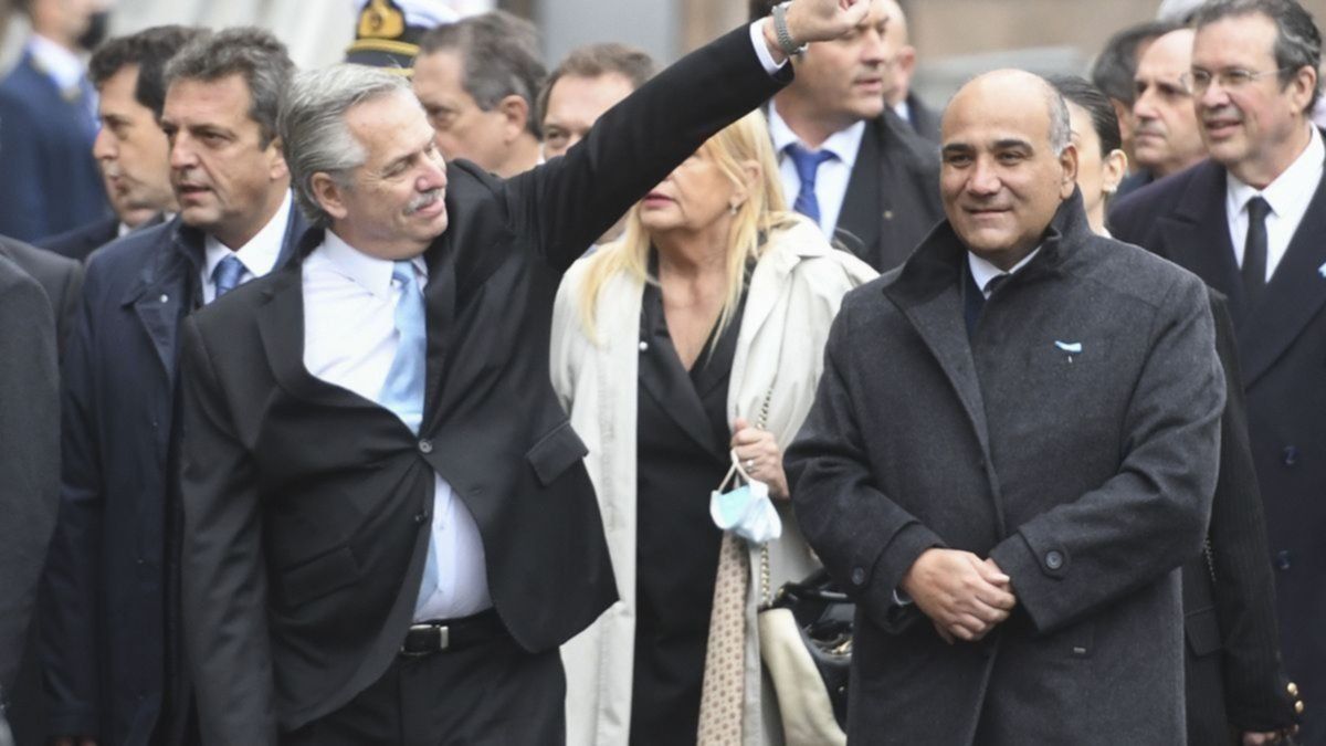 Fernández estuvo acompañado por el jefe de Gabinete, Juan Manzur; los ministros Eduardo "Wado" de Pedro (Interior), Jorge Taiana (Defensa) y Matías Kulfas (Producción); el canciller Santiago Cafiero; el presidente de la Cámara de Diputados, Sergio Massa; y la vocera presidencial Gabriela Cerruti; entre otros.
