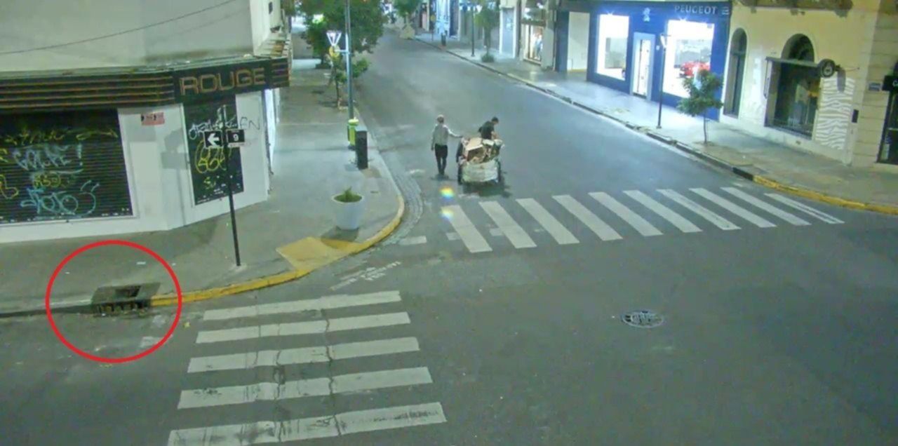 En las imágenes difundidas se ve como dos jóvenes que se dedican a juntar cartones con un carro se acercan a una boca de tormenta en la esquina de 9 y 49. La secuencia muestra como antes de su llegada la alcantarilla tenía una tapa, la cual ya desapareció cuando los cartoneros se alejan del lugar.