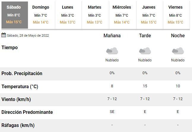 Los expertos esperan, además, un domingo con condiciones similares. En el SMN indicaron que el fin de semana terminará con una temperatura oscilando entre 7 y 14°C, acompañado de un cielo mayormente cubierto de nubes y apenas un poco de sol.