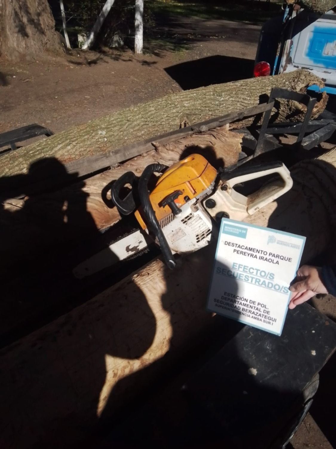 “Dos personas con motosierra, tráiler, camioneta y todo lo necesario para cortar y llevarse prácticamente un árbol, que si bien ya estaba caído, no es una actividad permitida”, fue el comunicado que se publicó en la página de Facebook, Guardaparques Parque Pereyra.
