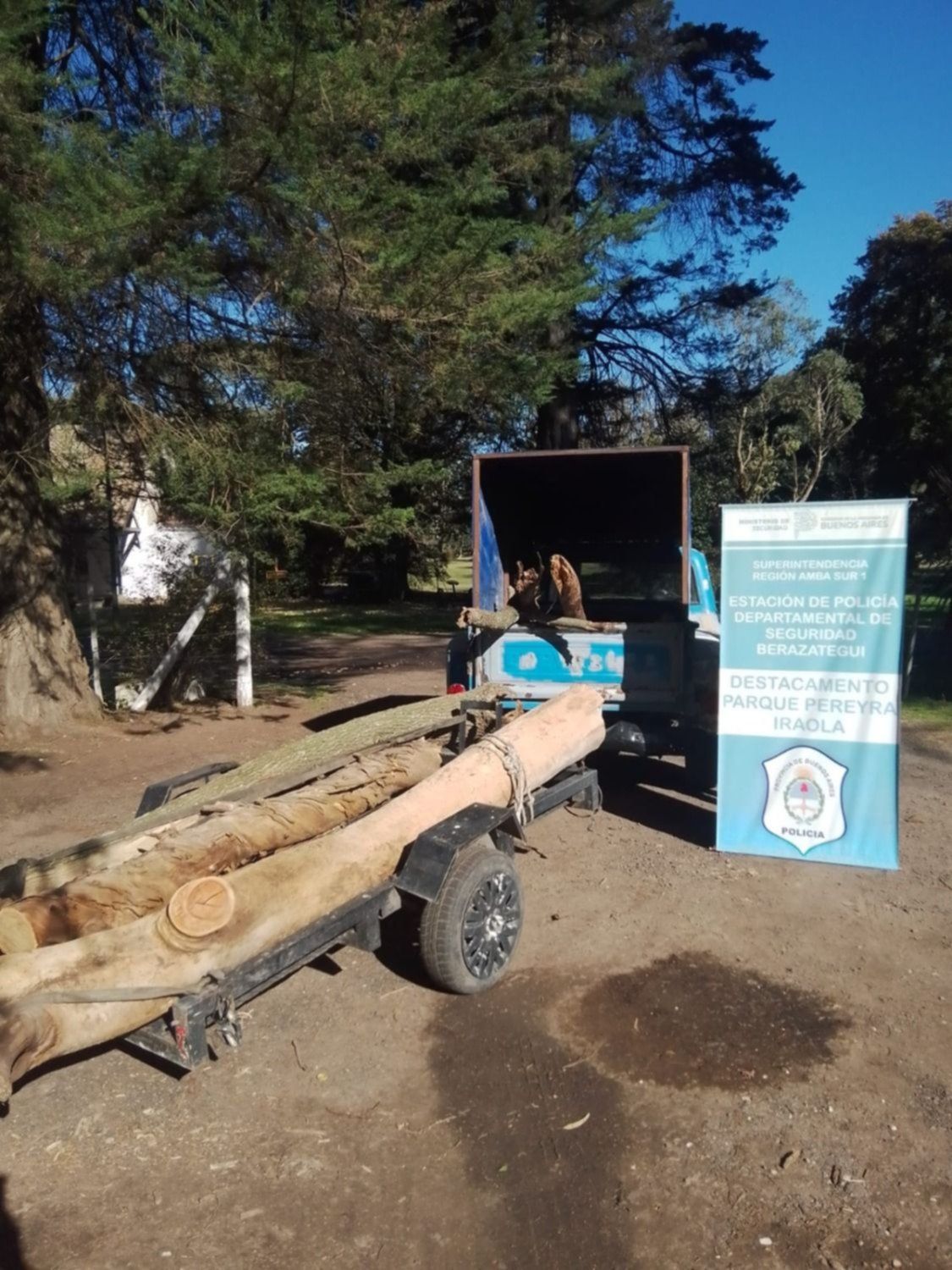 Personal del Destacamento Policial del Parque Pereyra detuvo a dos personas que intentaron llevarse un árbol sobre el “Camino Evita” del predio. Los sujetos contaban con sierras y hasta un tráiler para llevarse el ejemplar en una camioneta.