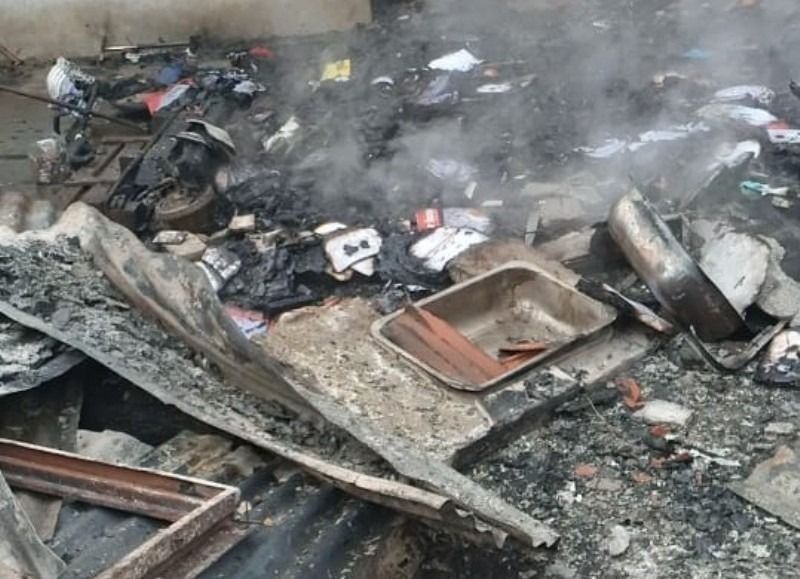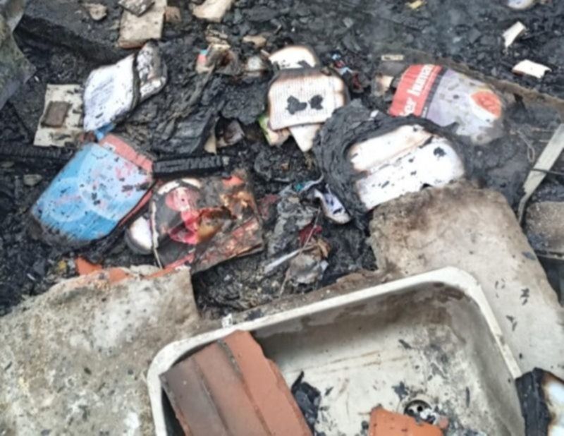 Esta casilla precaria tardó minutos en ser consumida por el fuego, al igual que el mobiliario, ropa y documentación.