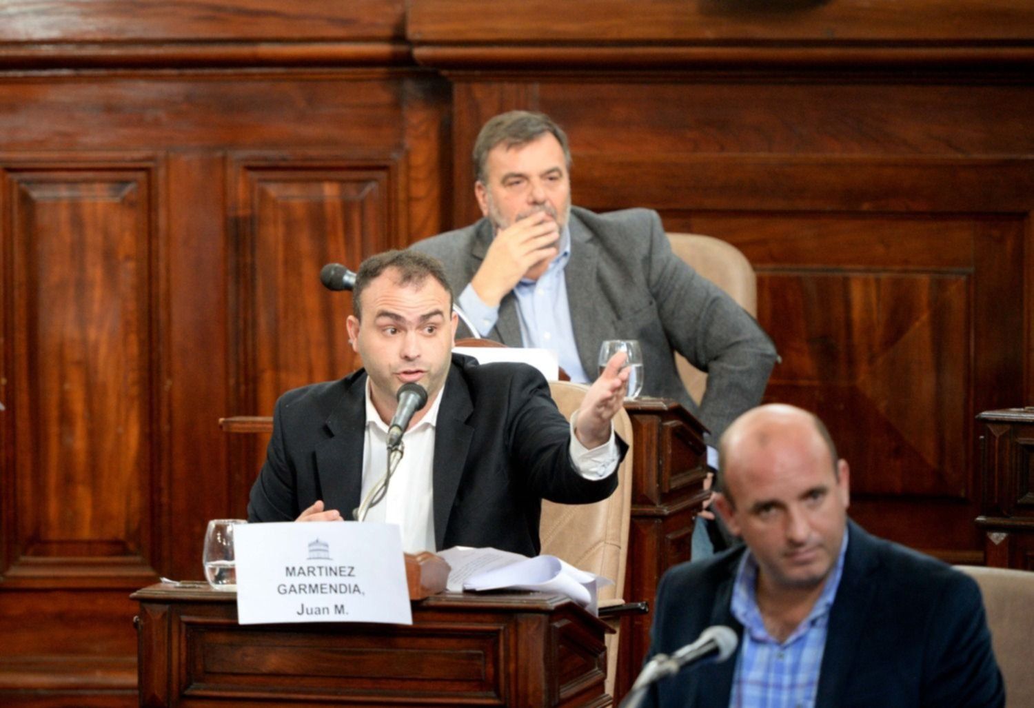 Le siguió su par del bloque, Juan Manuel Martínez Garmendia, quien acusó al bloque opositor de hacer una puesta en escena, de defender al ex líder de la UOCRA platense, Juan Pablo "Pata" Medina, y les endilgó que la vicepresidenta Cristina Kirchner tiene en su haber 13 procesamientos por causas judiciales. "Miren qué paradoja que su jefa política tiene en su haber 13 procesamientos y de eso no se habla, o mejor dicho cuando tienen que hablar de esos temas, se refieren a los conceptos de lawfare o persecución política", les dijo.