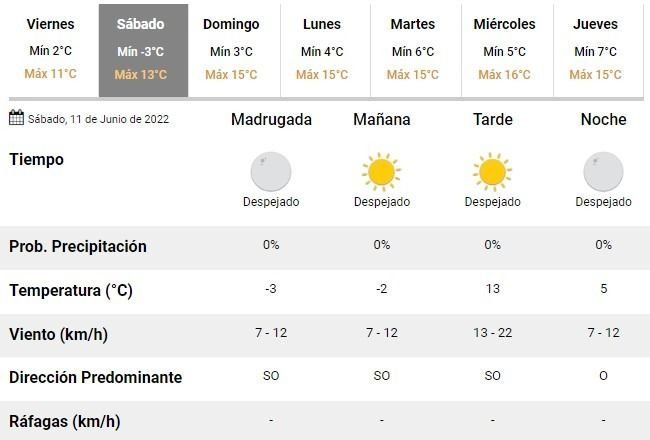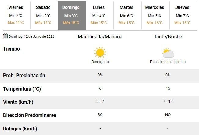 El pronóstico para el fin de semana, en tanto, tampoco es el mejor. Aunque se esperan dos jornadas con muy buen tiempo, las bajas temperaturas no darán tregua a los vecinos: para el sábado se prevé una mínima de -3°C y para el domingo una de 3°C.