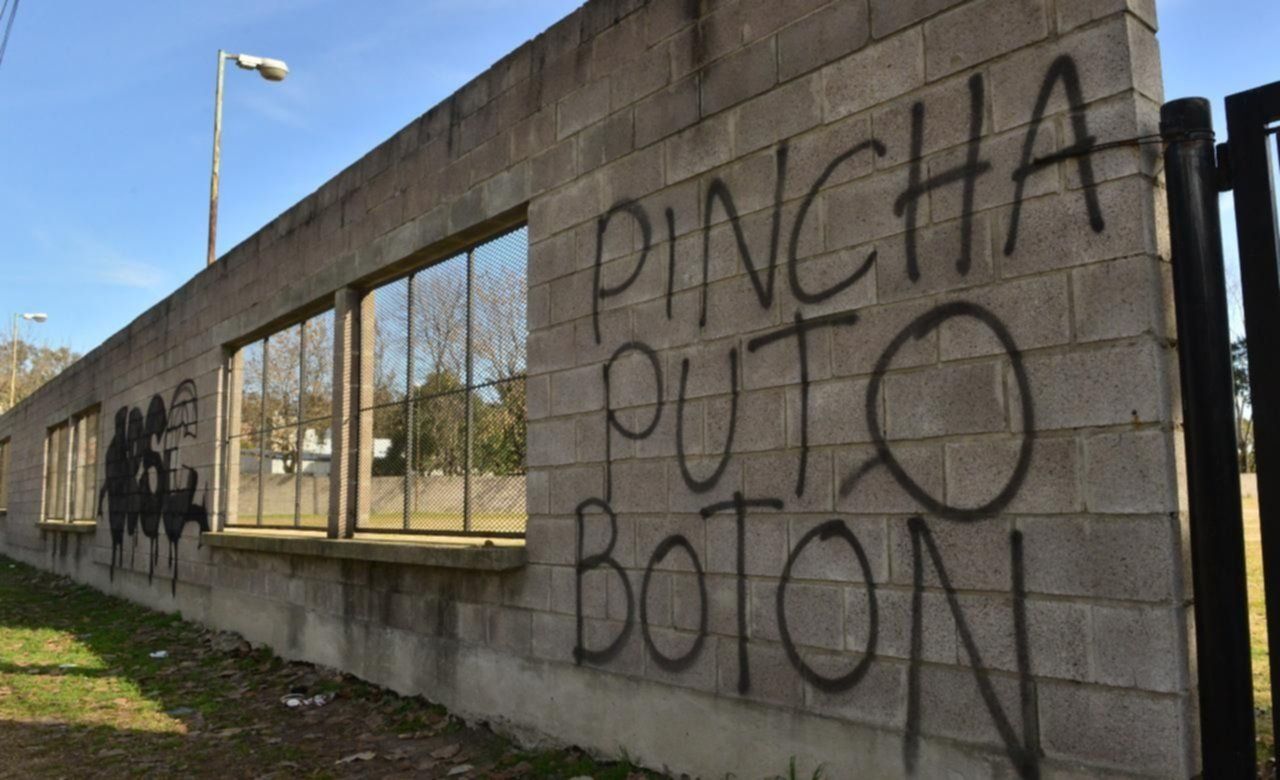 Sin embargo, este lunes Estudiantes iba a realizar sus primeras pruebas a jugadores de categorías infantiles y así inaugurar el predio, pero el lugar amaneció con pintadas azules y blancas en sus paredes y frases intimidatorias sobre la entrada.