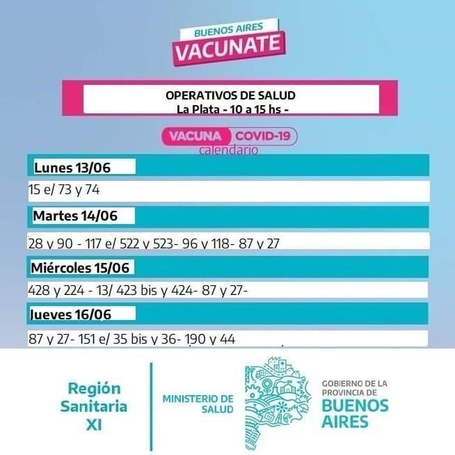 Las autoridades sanitarias indican que los puestos fijos en donde se continuará vacunando, son: en el Estadio Ciudad de La Plata, Hospital Elina de la Serna (8 y 42), Hospital Alejandro Korn (520 y 175) y Hospital San Juan de Dios (71 y 27).