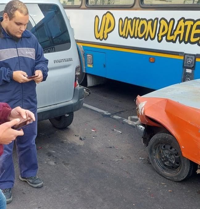 Vecinos de La Plata fueron testigos de un llamativo choque múltiple en 55 y diagonal 79. Es que el tránsito estuvo cortado por varios minutos por un “sanguchito” que le hicieron a un vehículo y un colectivo de la línea Norta a un histórico Dodge 1500 naranja.
