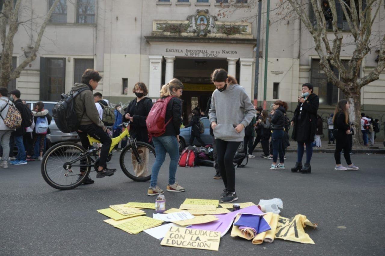 La convocatoria fue lanzada con una consiga de respaldo al colegio: "Las y los estudiantes, padres, madres nos queremos dirigir a la comunidad ante las falsas acusaciones difundidas sobre nuestro querido Albert Thomas", decía. Así fue que al mediodía se concentraron en 1 entre 56 y 57, aunque la concentración incluyó alumnos que se preparaban marchar por la ciudad con reclamos relacionados con infraestructura de la escuela, como la falta de gas, la exigencia de un comedor o de baños en buenas condiciones para ser utilizados.