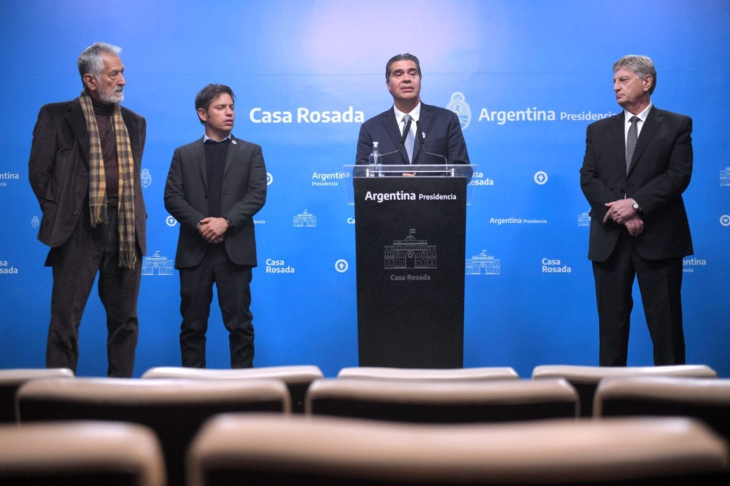 A Balcarce 50 llegaron los gobernadores Axel Kicillof (Buenos Aires); Raúl Jalil (Catamarca); Jorge Capitanich (Chaco); Mariano Arcioni (Chubut); Gildo Insfrán (Formosa); Sergio Ziliotto (La Pampa); Ricardo Quintela (La Rioja); Omar Arce (vicegobernador de Misiones); Omar Gutiérrez (Neuquén); Arabela Carreras (Río Negro); Alberto Rodríguez Saá (San Luis); Alicia Kirchner (Santa Cruz); Carlos Silva Neder, vicegobernador de Santiago del Estero; Gustavo Melella (Tierra del Fuego) y Osvaldo Jaldo (Tucumán). Por Entre Ríos asistió también la vicegobernadora Laura Stratta, al igual que por San Juan, Roberto Gattoni. En tanto que por Salta asistió el presidente de la Cámara de Diputados de la provincia, Esteban Amat Lacroix. (DIB)