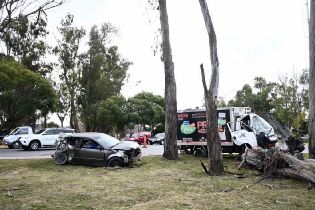 Como suele ocurrir en los accidentes que ocurren con los autos que salen de la diagonal 74, los autos impactan contra un árbol. Entre los involucrados esta vez estuvo un camión de reparto de lácteos, un Chevrolet Tracker negro y un Toyota Corolla gris.