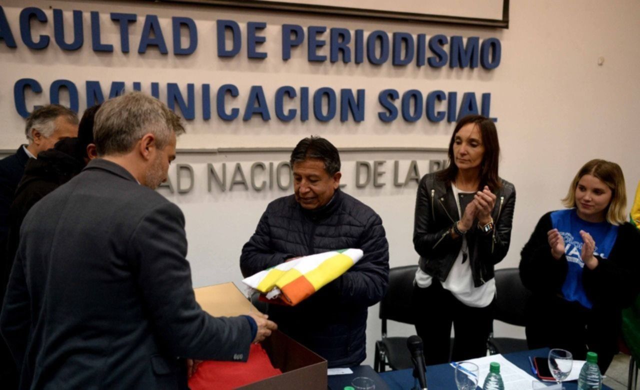 De esta manera, se precisó que por pedido de la Agrupación Rodolfo Walsh, que conduce el Centro de Estudiantes, la Dirección de Pueblos Originarios "Emilia Uscamayta Curi" y la Secretaría de Derechos Humanos, el Consejo Directivo aprobó darle el galardón máximo de la Facultad al vicepresidente del hermano Estado Plurinacional de Bolivia, David Choquehuanca.
