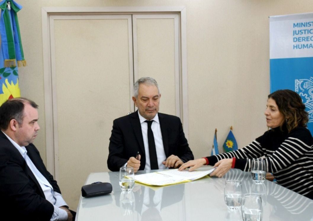Alak, junto al titular de Acción Social del SPB, Jesús del Giorgio, informaron que el predio fue adquirido con fondos propios de la Dirección Provincial, tras la Licitación Pública N° 03/2022.