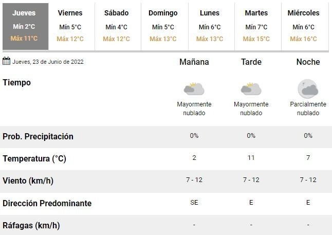 Los expertos del Servicio Meteorológico Nacional (SMN) indicaron que el jueves comenzó con una mínima de apenas 2°C y en la misma línea anticipan una máxima de apenas 11°C, pasado el mediodía.