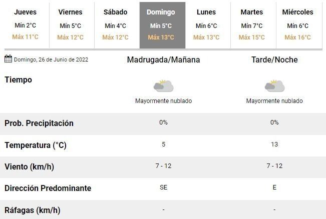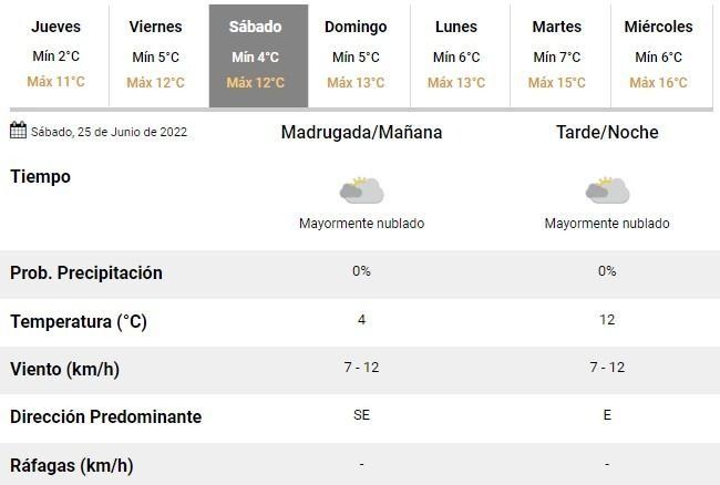 El clima seguirá sin dar tregua durante el fin de semana y es que se esperan dos días de descanso con bajísimas temperaturas en la ciudad: para el sábado se prevé una mínima de 4°C y una máxima en torno a los 14°C, mientras que durante el domingo las mismas oscilarían entre 5 y 13°C. La buena noticia es que los expertos no prevén lluvias durante los días de descanso.