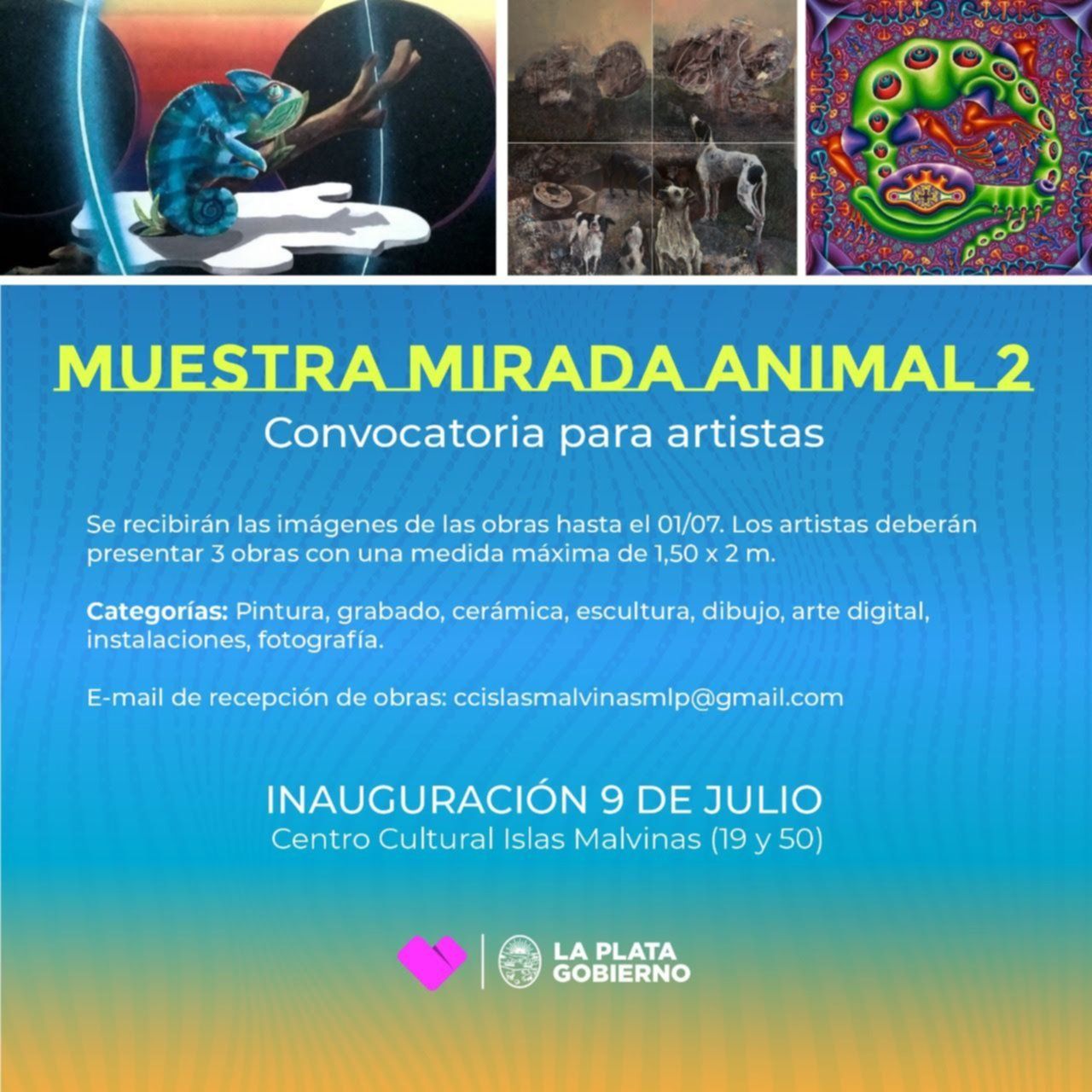 La Secretaría de Cultura y Educación de la Municipalidad abrió la convocatoria para artistas de distintas disciplinas que quieran participar de la muestra "Mirada animal 2", que será exhibida en el Centro Cultural Islas Malvinas, ubicado en 19 y 50.