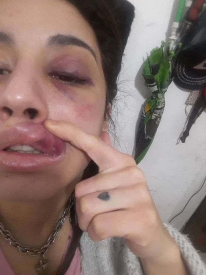 Luego de la golpiza, la joven llegó al hospital con la cara ensangrentada y graves heridas en la cara. Luego se constató que tenía una rotura de tabique, por lo que ahora tiene la cara vendada. "Como ellos tienen plata pusieron abogado particular cosa que yo puedo, porque trabajo en un bar, hago alisados y pestañas, y con eso vivo el mes. Y cuando él trabajaba siempre mantuve a mi hijo sola. O con poca ayuda, muy poca, de su madre", dijo la víctima en diálogo con el portal BerissoCiudad.