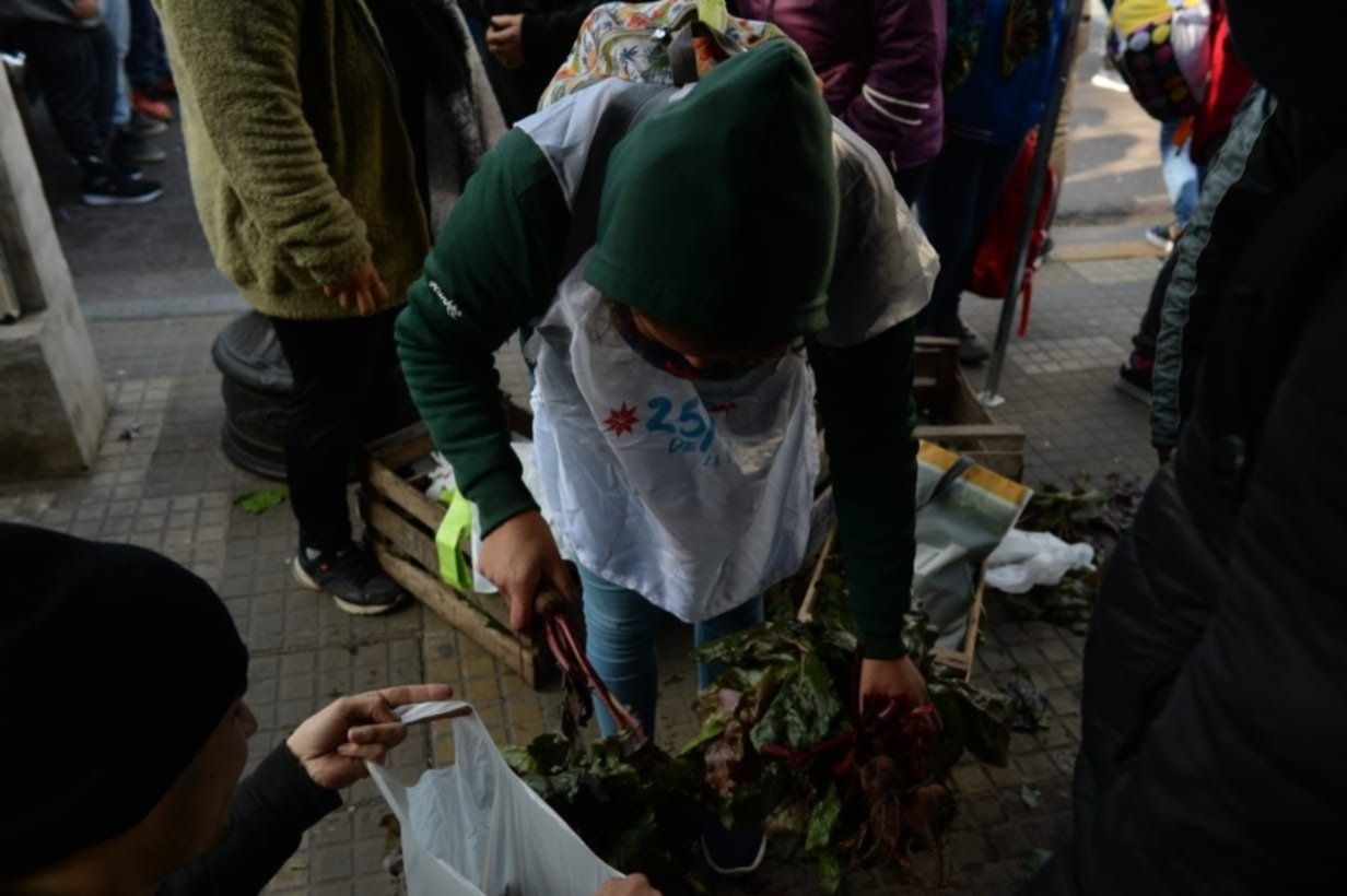 Organizaciones sociales nucleadas en la Unión de Trabajadores y Trabajadoras de la Economía Popular (UTEP) realizaron este miércoles desde las 11 un "verdurazo" en la esquina de 7 y 50, y vendieron las verduras y hortalizas que producen a precios populares.