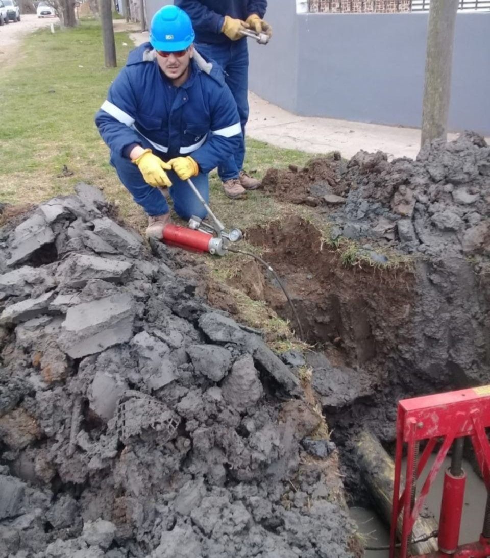 Minutos más tarde, personal de guardia de Camuzzi se presentaron en el lugar y efectuaron la obturación de la cañería para iniciar la reparación.