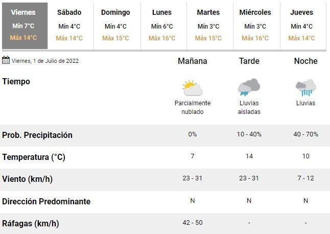 Julio comenzó fresco en la ciudad y con una mínima de 7°C, aunque los meteorólogos esperan una temperatura en aumento y una máxima en torno a los 14°C. Las malas noticias llegarían en tanto durante la tarde, con un rápido desmejoramiento de las condiciones climáticas y la vuelta de las lluvias.