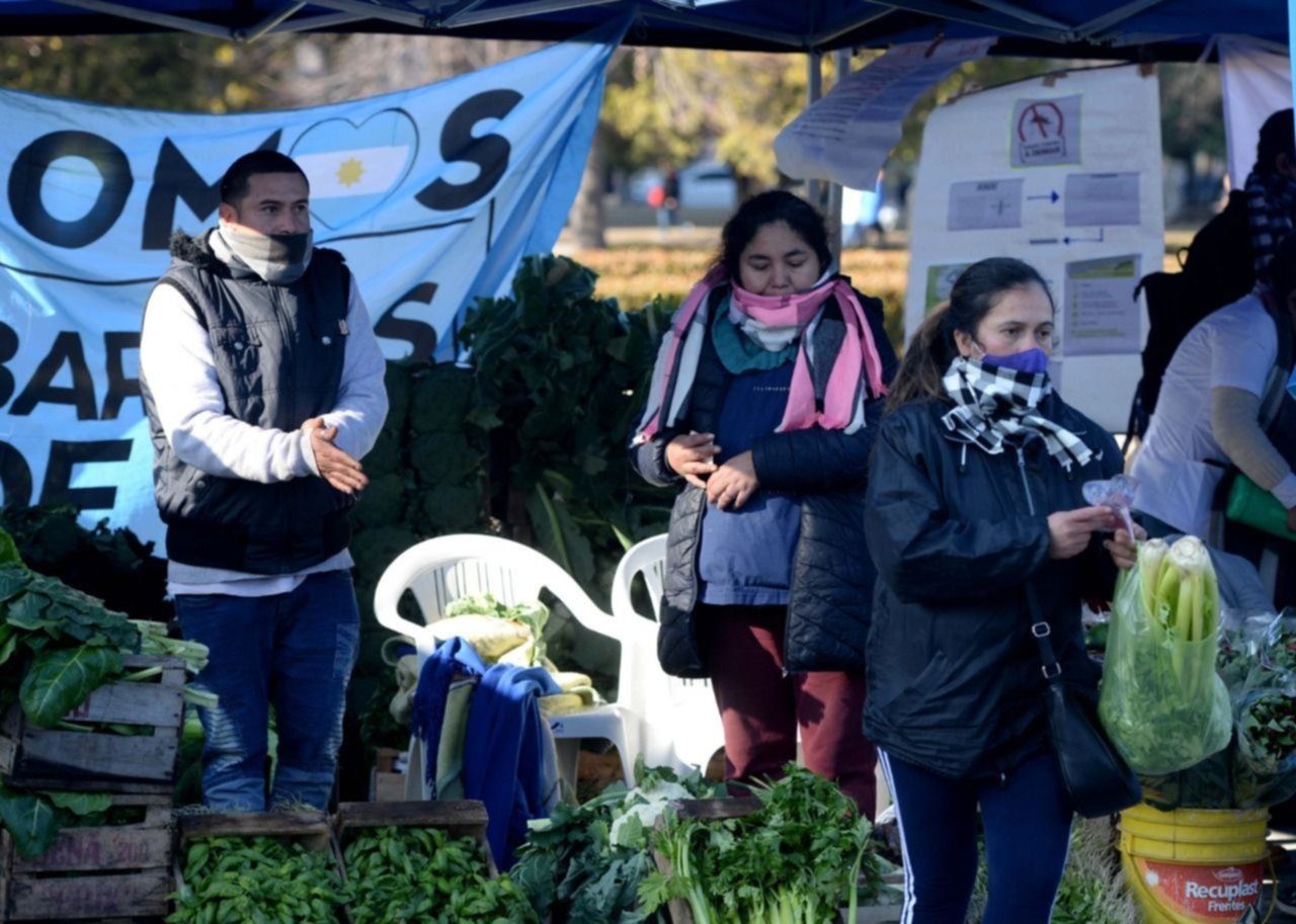 Frente a Plaza Moreno instalaron puestos improvisados en donde vendían al costo bolsones de mercadería, frutas y verduras. Cortaron la circulación por completo en calle 12, generando un verdadero conflicto en el tránsito. Rechazan el avance de un proyecto que busca regular la actividad en los invernaderos del cordón frutihortícola.