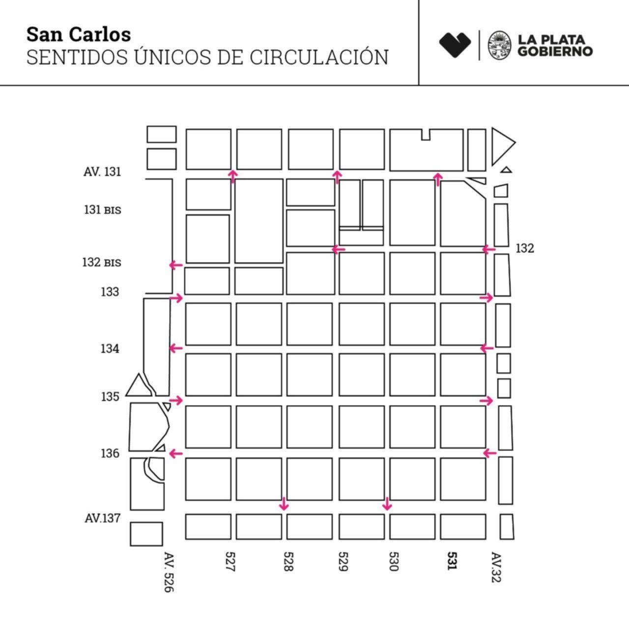 La Municipalidad propuso que algunas calles de San Carlos pasen a tener sentido único de circulación en el marco del Plan Estratégico 2030. El Ejecutivo local elevó un proyecto de ordenanza al Concejo Deliberante para realizar las modificaciones en la cuadrícula comprendida por las calles 31, 137, 526 y 32, con el objetivo de dar continuidad con las arterias contiguas y articular el ordenamiento vial con las obras públicas que se llevan adelante en la localidad.