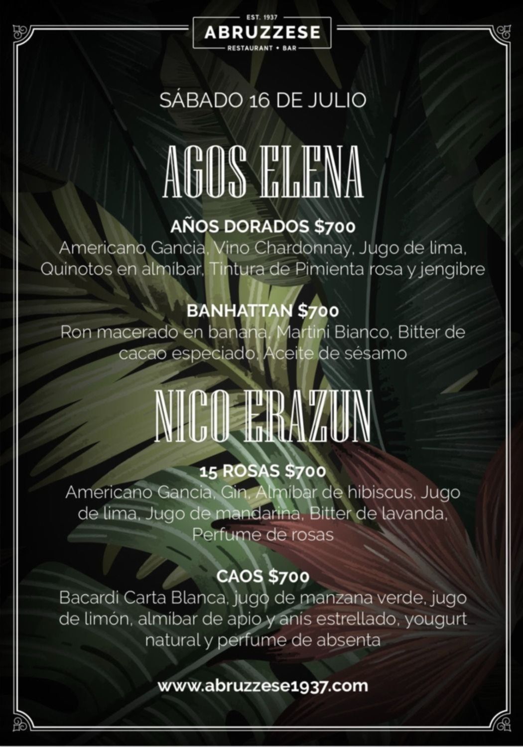 El jefe de barra del bar platense Abruzzese, Nicolás Erazun, debutó compitiendo en el programa Gran Bartender, el concurso de coctelería que emite Telefé que busca el mejor bartender del país. En ese marco, el oriundo de La Plata propone una noche especial en el local de 49 entre 10 y 11, junto a una compañera del certamen televisivo, Agos Elena.
