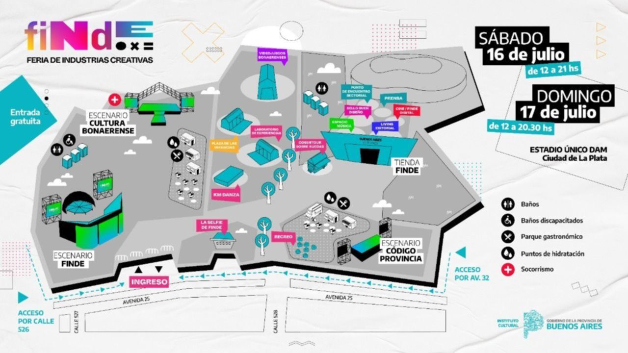 En el comienzo de las vacaciones de invierno, el Estadio Ciudad de La Plata abrió sus puertas este sábado para albergar la Feria de las Industrias Creativas (Finde), un evento que apunta a promover a las cinco industrias que nuclea la Subsecretaría de Industrias Creativas e Innovación Cultural: Música, Videojuegos, Editorial, Audiovisual y Diseño.
