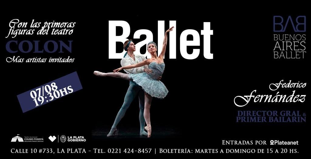 La compañía Buenos Aires Ballet se presentará el próximo domingo 7 de agosto a las 19.30 en el Teatro Coliseo Podestá, ubicado en 10 entre 46 y 47. La BAB cuenta con las primeras figuras del Teatro Colón, Federico Fernández y Camila Bocca.