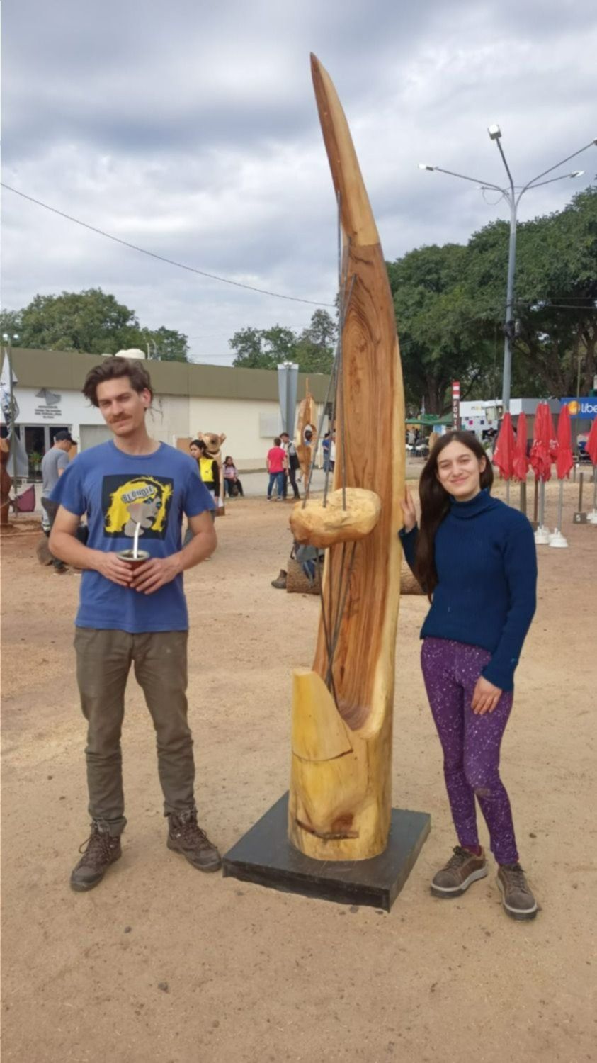 Por otro lado, el equipó de escultores destacó la ayuda que recibieron para poder viajar y competir en la Bienal, “El escultor y José Nazareno Barrera nos fue orientando un montón sobre cuestiones técnicas y visuales, de cómo cortar el tronco, como usar la motosierra y darle la forma que buscamos. Luego, el que nos acompaña siempre y nos representa es Roberto Williman, un comerciante de motosierras de la marca Sthil (tiene su negocio en 7 y 73) que nos estuvo prestando las máquinas y ayudando un montón. Roberto es conocido por ser el vecino que abrió el famoso cofre de Dardo Rocha. Después, el que nos estuvo dando una re mano fue Fernando Rigone, el escultor del Parque Saavedra, que nos prestó su espacio de taller para practicar y nos fue aconsejando también. Agradecemos con mucho amor cada gesto y ayuda que nos dieron. Ojala ganemos el concurso”, decían los artistas a días de viajar a la competencia.
