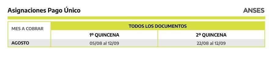 La Administración Nacional de la Seguridad Social (ANSES) dio a conocer el calendario de pagos de agosto para jubilados, jubiladas, pensionados y pensionadas, Pensiones No Contributivas, titulares de la Asignación Universal por Hijo y la Asignación por Embarazo, Asignaciones Familiares y de Pago Único (Matrimonio, Nacimiento y Adopción) y Prestación por Desempleo.