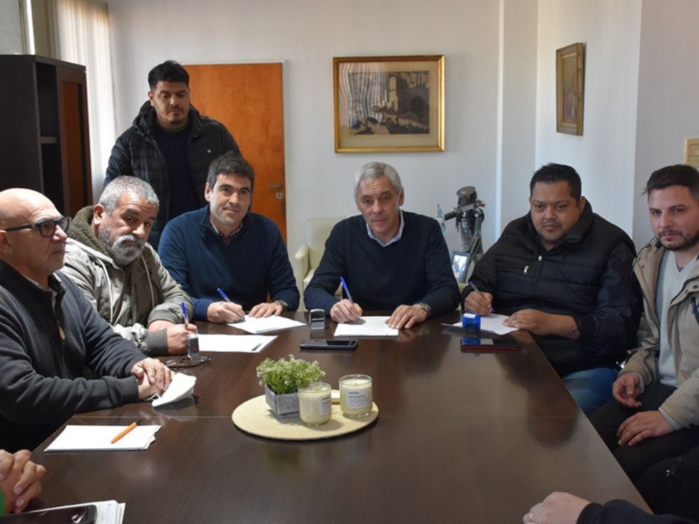 En la rúbrica estuvieron los representantes gremiales de los tres sindicatos con representación en la Comuna: Municipales, ATE y UPCN. Por el lado del Departamento Ejecutivo estuvo el propio jefe comunal.